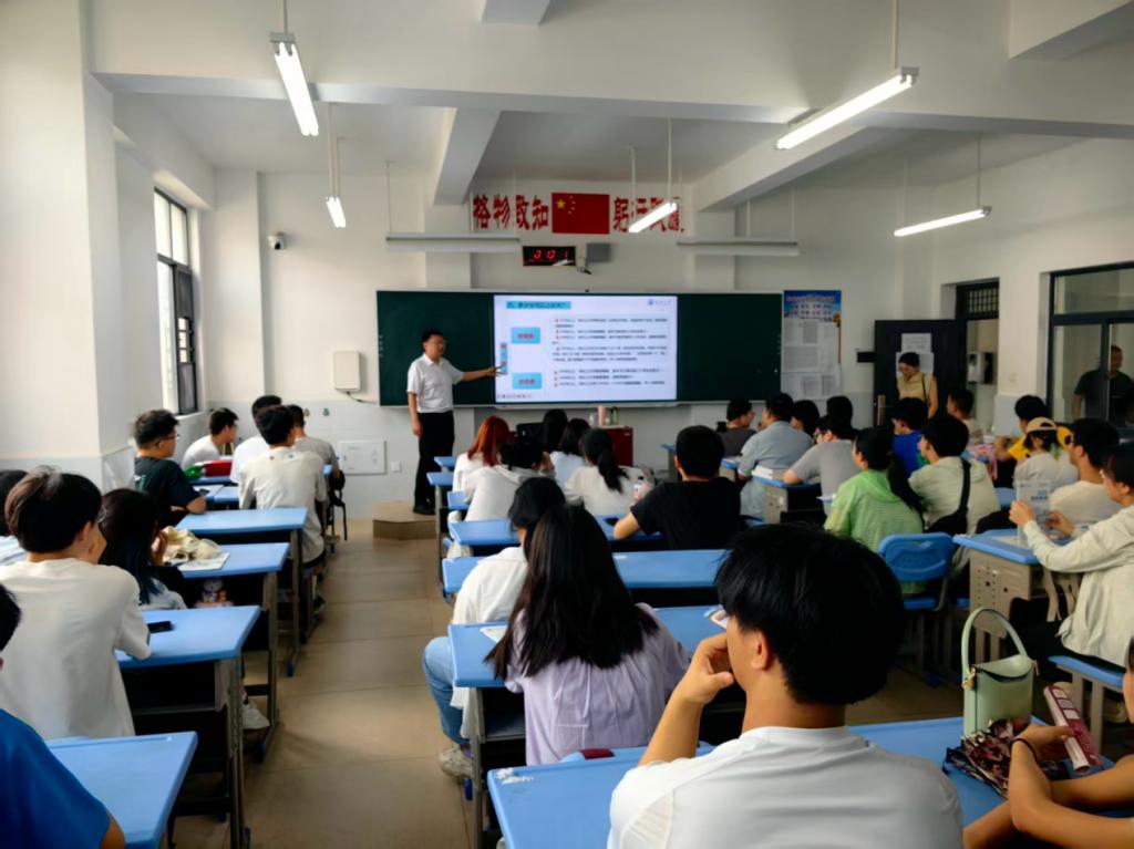 讲座现场,谷军通过多媒体展示,系统介绍了新葡的京集团官网的发展历程、学科专业布局、师资力量、人才培养特色及毕业生发展前景。他结合信息科学与数理基础融合应用的学科特点,重点解读了新葡的京集团官网今年的招生政策、优势专业方向及录取办法,为考生提供了清晰的报考指引。在随后的互动环节中,同学们围绕专业学习、科创平台、生涯发展等话题踊跃提问,谷军一一给予了详尽解答,现场气氛热烈,交流融洽。整场活动持续约两小时,有效增进了荆门地区考生对新葡的京集团官网办学实力与特色的认同感。
