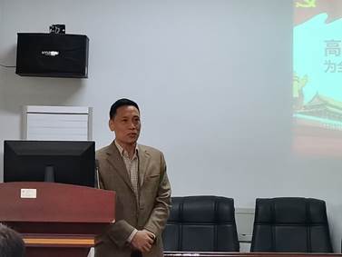 会议伊始,高迎斌以二十大背景展开,进而讲述大会主题:高举中国特色社会主义伟大胜利旗帜,为全面建设社会主义现代化国家团结而奋斗。紧接着,他向大家介绍了二十大报告总体框架的15个部分,并强调将着重介绍中国共产党的中心任务:从现在起,中国共产党的中心任务就是团结带领全国各族人民全面建成社会主义现代化强国、实现第二个百年奋斗目标,以中国式现代化全面推进中华民族伟大复兴。而后他向我们讲述中国特色现代化的五大特征,解释了我国为什么要实现中国特色社会主义现代化、如何实现中国特色社会主义现代化。
