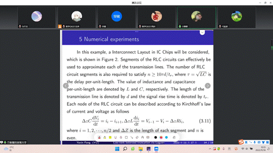 新葡的京集团3512vip方雅馨同学报告就模型降阶方法是优化设计、优化控制和反问题应用中常见的方法。方雅馨同学的精彩报告中考虑了离散时间系统在频域的模型降阶问题,给出了两种算法,搭建起了连续系统和离散系统之间的桥梁。将一个较大型系统降阶为一个近似的较小的系统, 从而达到降低计算维数、减少运算量和数据存储量的目的。并且还能够使得降阶后的较小系统能够保持原较大系统的一些固有结构和性质。