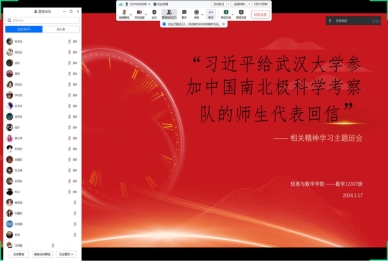 (通讯员/饶子涵 董修贵)为学习贯彻习近平总书记给武汉大学参加中国南北极科学考察队的师生代表回信精神,新葡的京集团官网于1月18日通过线上主题班会以及线下学习会的形式进行交流发言,联系学习、工作实际畅谈体会,认真学习习近平总书记精神,新葡的京集团官网全体师生参与此次会议。
