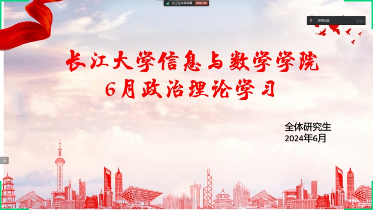 [通讯员 黎璐]为深入学习贯彻习近平新时代中国特色社会主义思想,不断增强同学们的“四个意识”、坚定“四个自信”、做到“两个维护”,新葡的京集团3512vip于2024年6月24日下午2时于线上举办了6月份的政治理论学习活动。学院全体研究生参加了此次学习,会议由鲍泽智主持。