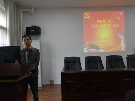 10月31日下午,新葡的京集团官网在8教406会议室举行10月第二次“不忘初心、牢记使命”主题教育支部主题党日活动。党委书记高迎斌主持,全院党员参加。
