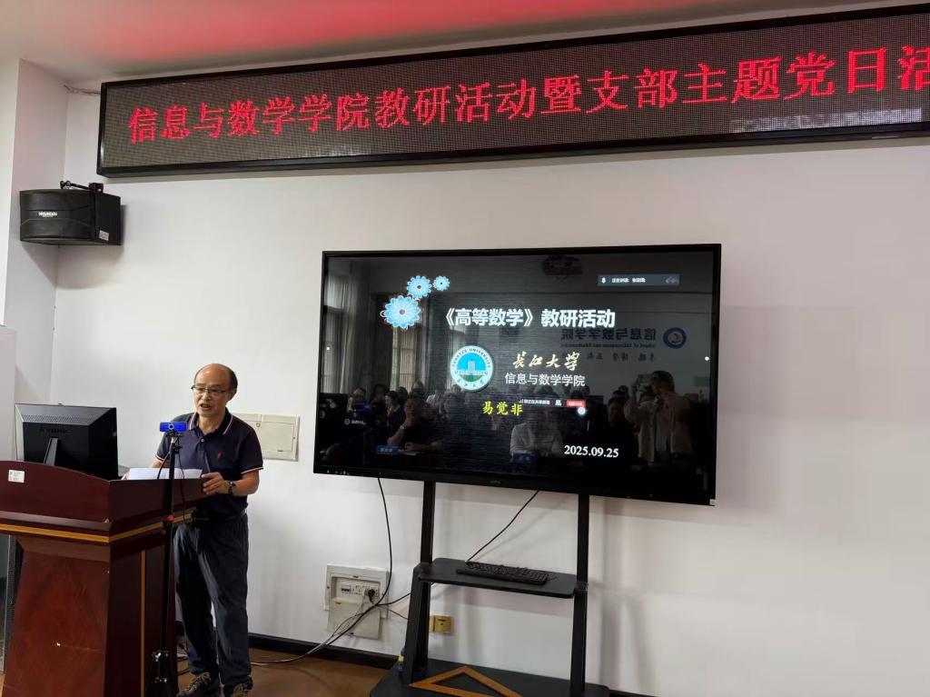 在教研环节,易觉非老师作专题分享,系统梳理了高等数学函数与极限的内容框架与重难点,并强调应科学定位AI在教学中的角色,为教学方法优化提供方向。